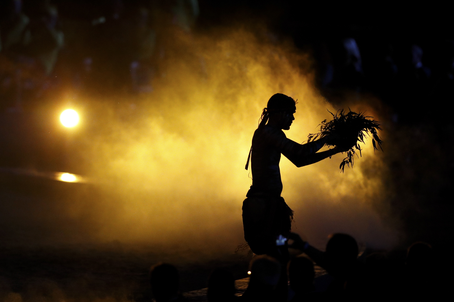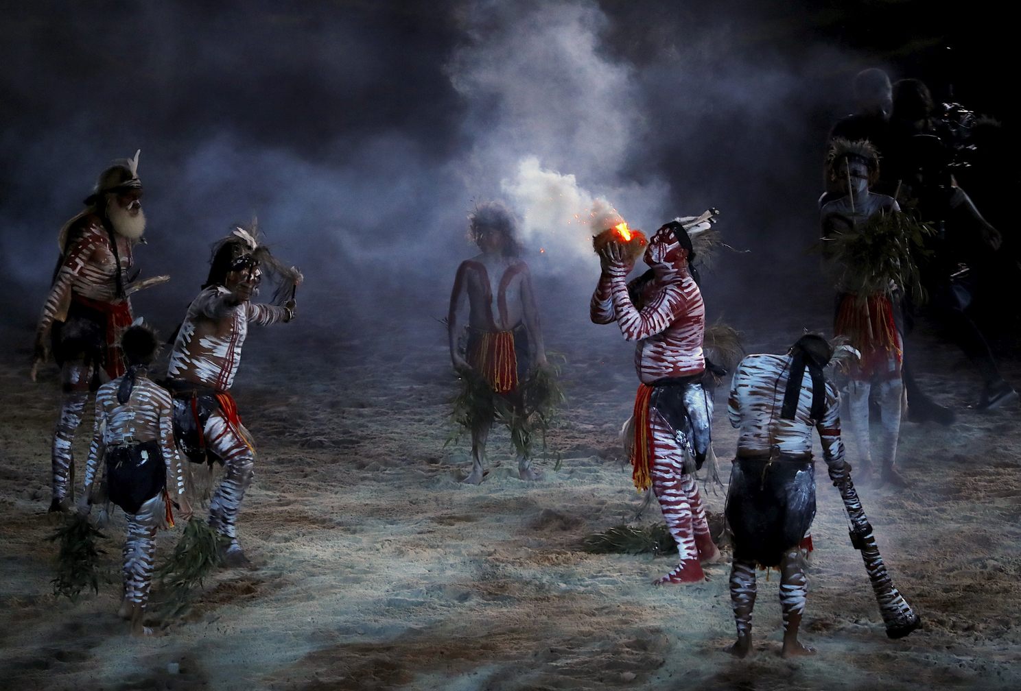 GOLD COAST, AUSTRALIA – APRIL 04: Luther Cora and his family conduct a traditional smoking ceremony during the Opening Ceremony for the Gold Coast 2018 Commonwealth Games at Carrara Stadium on April 4, 2018 on the Gold Coast, Australia. (Photo by Quinn Rooney/Getty Images)