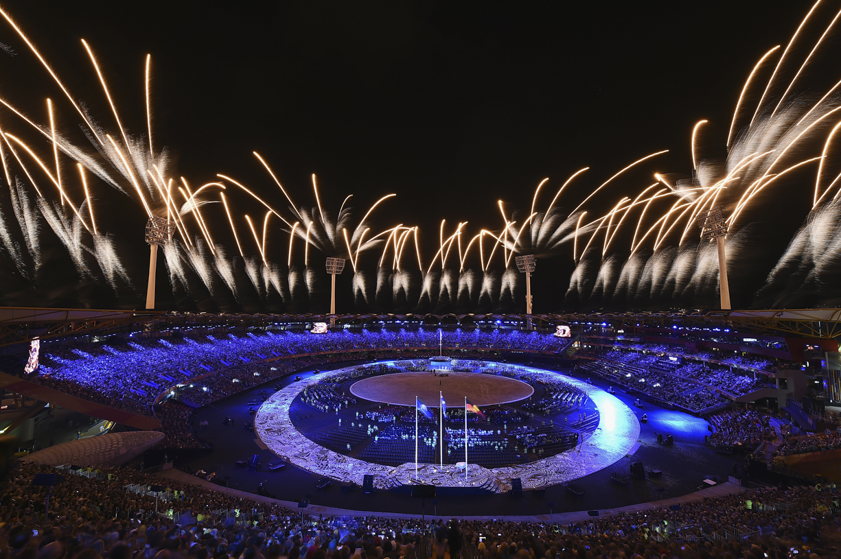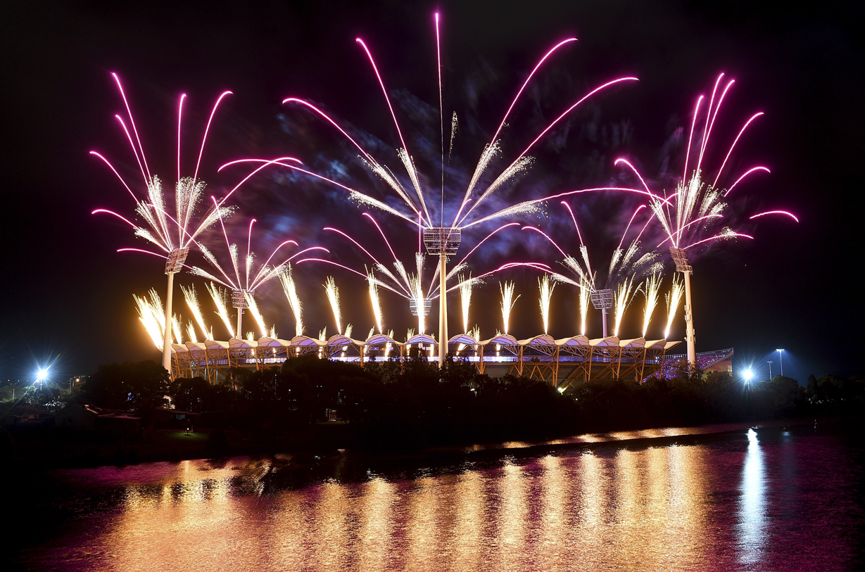 GOLD COAST, AUSTRALIA – APRIL 04: Fireworks are seen during the Opening Ceremony for the Gold Coast 2018 Commonwealth Games at Carrara Stadium on April 4, 2018 on the Gold Coast, Australia. (Photo by Bradley Kanaris/Getty Images)