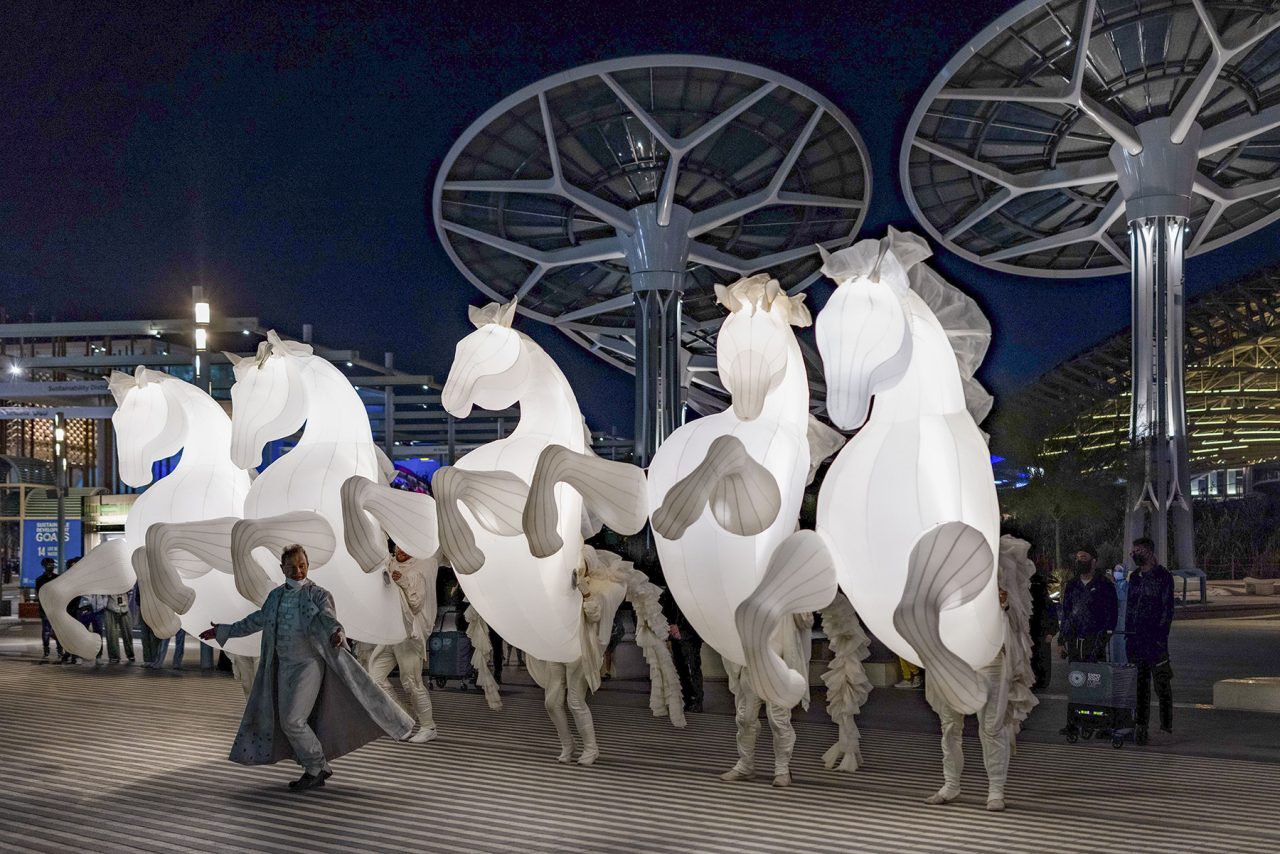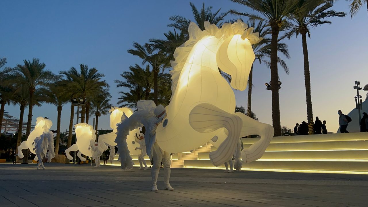 DUBAI, 23 January 2022. Golden Falcon roving performance.DUBAI, 22 January 2022. The Expose dance performance.DUBAI, 23 January 2022. Fiers à Cheval roving performance.
